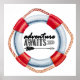 Nautical watercolor life preserver ring with Boho style center text that reads "Adventure Awaits".