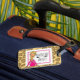 Durable Hard plastic bag tag with faux leather strap and cute saying with fun leopard background. Bright, colorful and crisp printing. Looks just like image on computer.