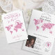 Modern and Elegant World Map bridal shower invitation , like passport. Pink glitter details and "adventure awaits" stamp