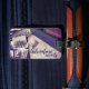 The cover photograph of this useful luggage tag features vintage maps and books next to an old fashioned travel photo album. In retro shades of indigo, tan, burgundy, and grey, the front quote reads "Adventure awaits". The back is a pale creamy tone suitable for adding your own custom text using the easy provided template.