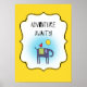 Cute pair of travelers about to set off on an adventure! Red bird perched atop a purple elephant with a bright yellow sun shining on them. Whimsical text adds to the cuteness of this design.