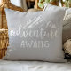 Adventure Awaits Wilderness Quote Gray Throw Pillow