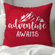 Adventure Awaits Wilderness Quote Red and White Throw Pillow