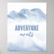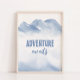 Cute Monogram Typography "Adventure Awaits" in winter themes with snow mountain design perfect for nursery, playroom, children's room, bedroom. Kids room decor.