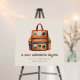 Adventure themed baby shower featuring illustration of a brown leather backpack adorned with wilderness, camping, and hiking themed patches with two baby bottles on the sides.