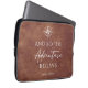 Adventure Begins Brown Leather Personalized Laptop Sleeve