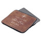Stylish Adventure themed brown leather personalized laptop sleeve. The design features a sophisticated brown leather look print background with white compass and motivational quote, "And so the adventure begins ". Personalize with your name to make it uniquely yours.