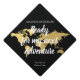 Adventure fun world map graduation cap topper. Gold World map on black background