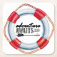 Nautical watercolor life preserver ring with Boho style center text that reads "Adventure Awaits".
