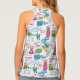 Women's All-Over Print Racerback Tank Top, White Piping, S