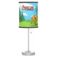 The lamp looks exactly like the picture, bright and colorful. The lamp shade is plastic not what I expected, however I love it! The printing is clear and the name can easily be read.