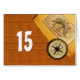 Adventure Wedding Table Number Card featuring an antique compass, a stegosaurus dinosaur skeleton information plate on a piece of paper and a wood look digital art background. This cool table card is perfect for an archaeology adventure or museum themed wedding. Easy to customize, simply add the appropriate table number(s) in the text field provided. Click "Customize It" to find more personalization options.