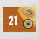 Adventure Wedding Table Number Postcard featuring an antique compass, a stegosaurus dinosaur skeleton information plate on a piece of paper and a wood look digital art background. This cool table card is perfect for an archaeology adventure or museum themed wedding. Easy to customize, simply add the appropriate table number(s) in the text field provided. Click "Customize It" to find more personalization options.