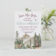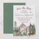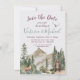 Adventure awaits for the new couple to be! Charming and rustic watercolor woodland Save the date. Features a mountain background with forest, fox and bear.Matching items on this one