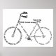 This poster features a bicycle drawing made out of motivational adventure words in different fonts. The words are in black over a white background. Great for cycling fans, bicycle enthusiasts, or anyone who loves adventure. Phrases include, "Fun times," "Live!," "Where to next?," and "Adventure," among others.