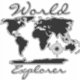 Whether setting sail on the high seas, or flying to unknown destinations, this sticker is perfect for your suitcase! It features a large black world map silhouette and black script saying "World Explorer". There is also a modern styled compass design. Decorate for your grand adventure! Place onto a wall in your library for a world traveler feel.