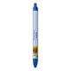 Very nice blue, or black ink pen. I will be buying more. The print was fine. I can easily see the print. The flowers look great.