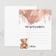 For a Baby Shower. A stylish white background. Decorated with rose gold, drips, paint dripping look, party streamers, balloons and a cute teddy bear.