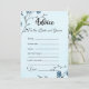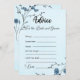 The elegant cards feature the words "Advice for the bride and groom" written in a pretty black script font, setting the tone for a tender and thoughtful experience. The backdrop is adorned with a serene and beautiful blue color, accentuated by delicate blue flowers and leaves. This calming and lovely design symbolizes the blossoming love between the couple, while also reflecting the fresh beginnings of their new life together.