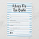 Blue and white Bridal Advice game for the bride to be. Hand drawn white horizontal stripes.