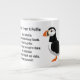 My husband had been complaining that all my coffee mugs were too small. I bought him the jumbo mug for Christmas and he loves it. The cup is made nicely and is not too heavy. The mug came in a box about 3 times the size of it. It was wrapped in several feet of large bubble pack. Thankfully that kept it from any shipping damage. I was a little worried when the heavy clear packing tape was taped right over my image but I was able to slowly peel it away and nothing was damaged. The printing is excellent. I am thrilled to see how clear the image printed. There do not appear to be any defects in the printing. The printing is smooth and seamless on the cup. I love how it turned out.