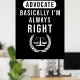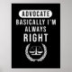 Advocate Basically Lawyer Is Always Right Poster