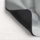 A close-up of a flaming orange and yellow rose desaturated down to a quieter black and white. Only the water droplets sprinkled on its soft gray petals give a hint of the original sunny colors.
