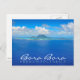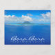 Postcard of an aerial view over tropical Bora Bora island with turquoise lagoon in the Pacific Ocean near Tahiti in French Polynesia with the text: 'Bora Bora, French Polynesia'.