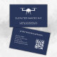 A minimal business card suitable for an aerial drone pilot photographer. The modern & stylish design features a white drone logo on the front with a navy background and space for your business name and tagline. On the back your name, contact information, & a QR code. Clients will easily be able to go to your website to view your images.