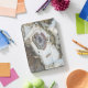 I was super excited when I got my cover in. It is attached by a magnet across the edge. I don’t think it will be very protective but it is very cute. I’m going to keep my iPad in a sleeve and use this face cover while I have it out. It folds to create a tilt for better viewing and to keep the iPad at a slight angle for typing. The colors are bright and it is fun. I’ve really enjoyed it. The personalization looks like amazing. It is the same color as the picture and is the same brightness. Well done! Very nice.