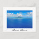 Postcard of an aerial view over tropical Bora Bora island with turquoise lagoon in the Pacific Ocean near Tahiti in French Polynesia with a white border and the text: 'Bora Bora'.