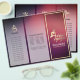 Aerial YOGA Meditation Pilates Fitness Instructor Studio Tri-Fold Brochures Template - Elegant Gold Aerial Yoga Pose and Handwritten Script Typography on Burgundy Red Purple Texture Background.