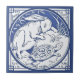 From the Aesop's Fables series by Minton's China in a beautiful shade of blue. The transferware tile shows the tortoise passing a sleeping hare. The words on the tile read "The hare and the tortoise run a race." The original dates to the late 1800s.