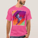 My 11 yo wore adult XL (5’7” 165#). The 8yo is small framed. She wore adult small and tied it in the back. Grandma wore adult large with long sleeve shirt underneath. Tall girl adult medium. Dark haired male adult large. Good quality dark Heather gray, Gildan brand shirt. -it was next up from basic choice and cost about $20 per shirt. Not too thick or thin. Washed and dried well, no major shrinkage. Not see-through. Can wear a bra under it fine. Screen print is just as shown and well done, front and back.