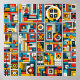 This vibrant geometric pattern features a captivating mix of colorful shapes, including triangles, circles, and squares. With its bold hues and harmonious design, it creates an energetic yet balanced aesthetic, perfect for adding a lively touch to modern spaces or artistic projects.
