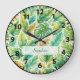 Aesthetic Green Tropical Leaves Custom Name Large Clock