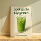 Calling all matcha girls! This “Cool Girls Sip Green” Matcha Lover Club design blends café-chic vibes with a wink of humor. A bold serif headline pairs with a script accent on green and a glossy iced matcha, creating a stylish matcha wall art look that feels modern yet a little retro. The neutral backdrop with a subtle grid keeps it minimal and versatile, so the rich green tea tones pop wherever you place it.