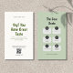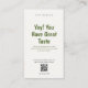 The front features a clean off-white background with a warm "Yay! You Have Great Taste" message in a sophisticated deep green font. It includes a customizable QR code placeholder—perfect for linking to your website, Etsy shop, or latest collections—along with your social media handle.