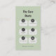 The back, titled "The Care Deets," uses a trendy sage green backdrop with clean icons organized in soft bubbles for a professional look.