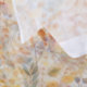 Layers of filmy foliage and plant parts in a wispy seamless design in muted tones of indigo, gold, tan, cream.