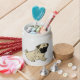 Hilarious cartoon pug puppy dog candy jar or cookie jar design. He's cute and fun and full of personality and will guard your treasures. Great gift idea. Can also add custom text when ordering.