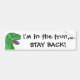 Funny t-rex dinosaur bumper sticker says stay back, I'm in the trunk. Maybe this will slow down tail gaters.