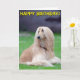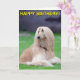 Beautiful Afghan Hound posing in the garden photo greetings card. Front text reads "Happy Birthday", inside text reads "Hope you have a great day!" Text can be customized.
