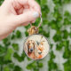 A beautiful watercolor portrait of an Afghan Hound dog sitting against lovely peach colored lilies flowers creating a lovely keychain and one the dog lover would love to receive as a gift.