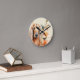 A beautiful watercolor portrait of an Afghan Hound dog sitting against lovely peach colored lilies flowers on this lovely wall clock, perfect for brightening any room.
