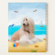 A afghan hound dog sitting on beach is a perfect gift idea for someone who love this dog breed.