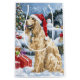 This festive design captures the joyful spirit of the holiday season, featuring an adorable pup wearing a Santa hat. The cat is nestled in a winter wonderland, complete with a snowman, a decorated Christmas tree, and beautifully wrapped presents. Snowflakes gently fall, adding a magical touch to the scene, while the vibrant colors of the holiday decorations create a warm and cheerful atmosphere.