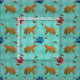 Cute Afghan Hound cartoon with a scattering of bones and paw tracks. This design is intended to tile seamlessly.