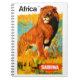 Vintage air travel poster for Sabena Airlines services to Africa featuring a majestic lion in the wild.