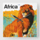 Vintage air travel poster for Sabena Airlines services to Africa featuring a majestic lion in the wild.